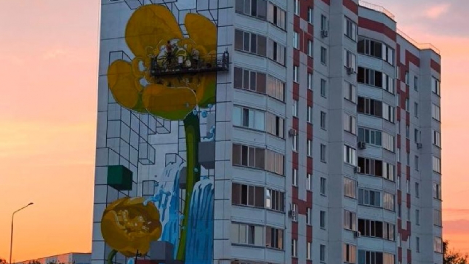 Художники уже приступили к рисованию первого мурала на проспекте Шинников. Это один из четырех 3-D муралов от компании «Татнефть», которые создадут единый художественный сюжет. Вскоре «коллекцию» пополнит мурал компании СИБУР.